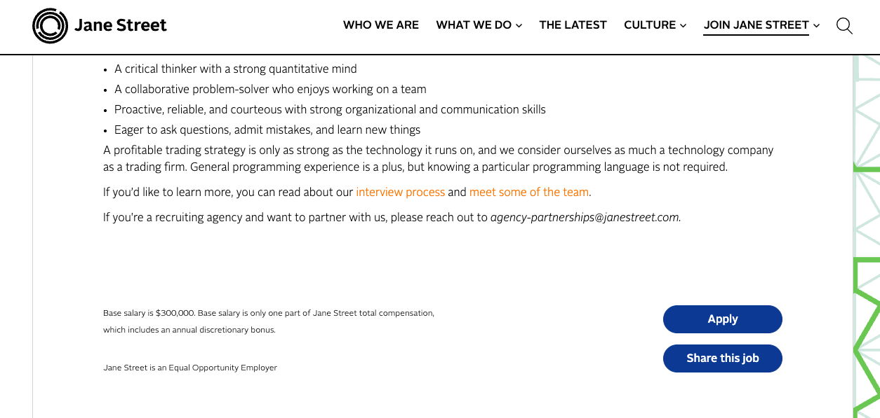 For reference, Jane Street's entry-level base salary is a staggering $300,000 (excluding bonuses)