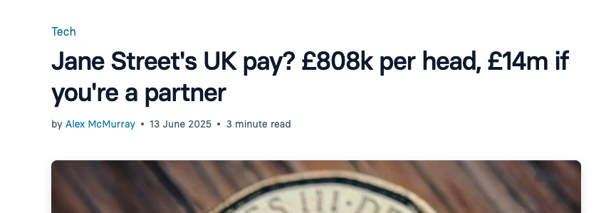 In the UK, Jane Street's average salary per employee was £800,000 (~$1.6 million), and executive-level compensation reached £14 million (~$28 million)