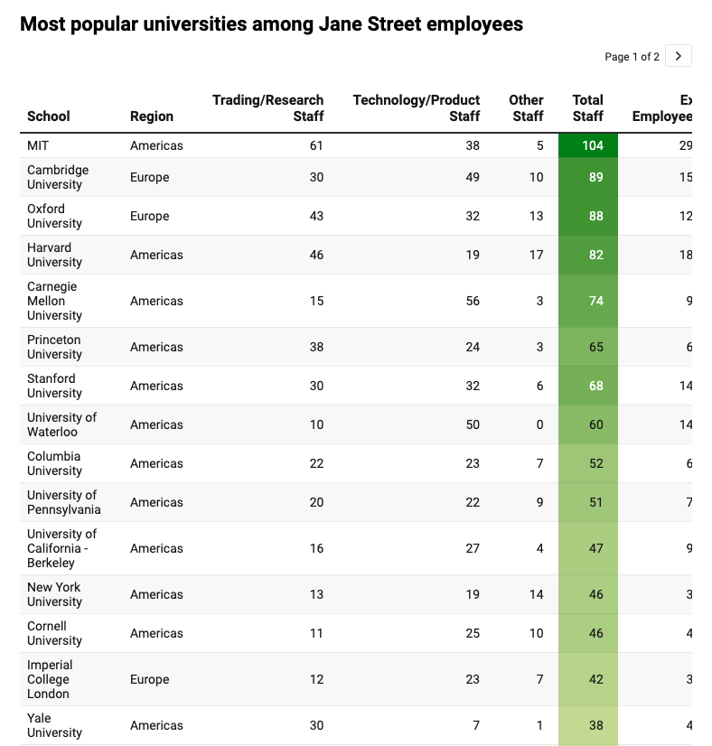 Let's take a look at which universities Jane Street loves the most when it comes to hiring.